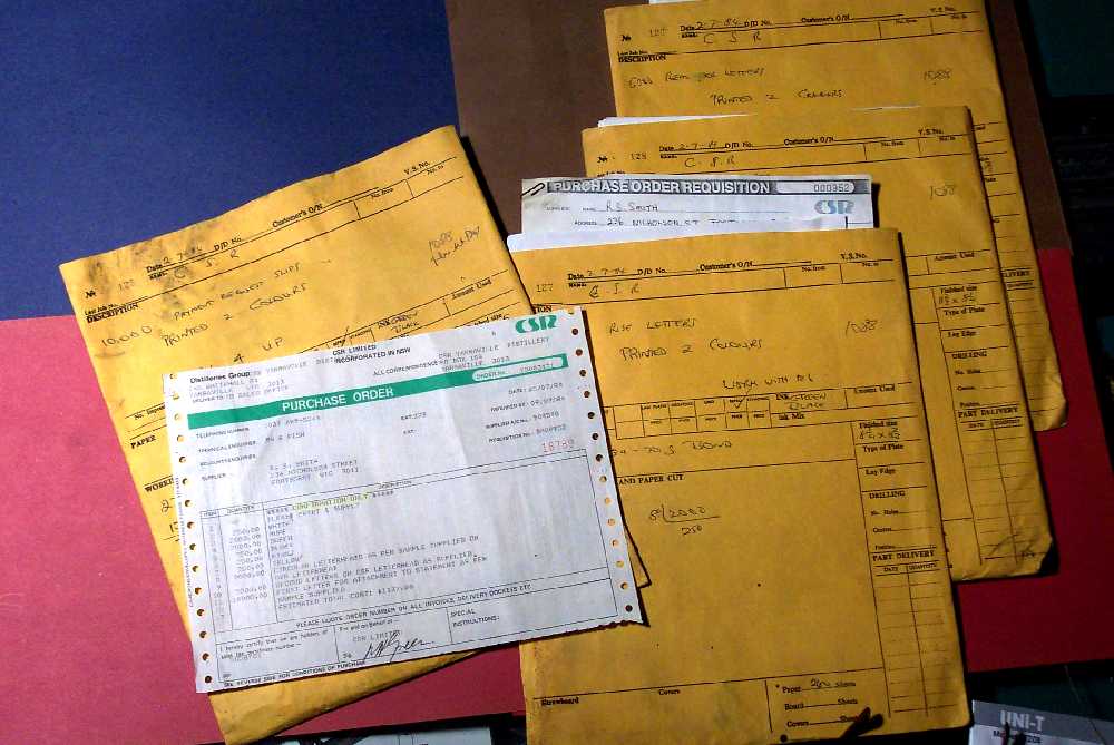 Here is an official, computerised order from a large business to their local printer. It covers four jobs and here are the four job bags.